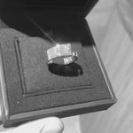 Eksklusiv diamantring laget av hvitt gull 18k med tre diamanter, i et tidløst og minimalistisk design, laget i Norge. Ringen er designet av Per Ekenberg og er en del av Pulpit Rock-samlingen av Ekenberg Scandinavia. Preikestolen kommer til syne i utformingen av ringen. Ringen var designet for å være behagelig å ha på seg.
